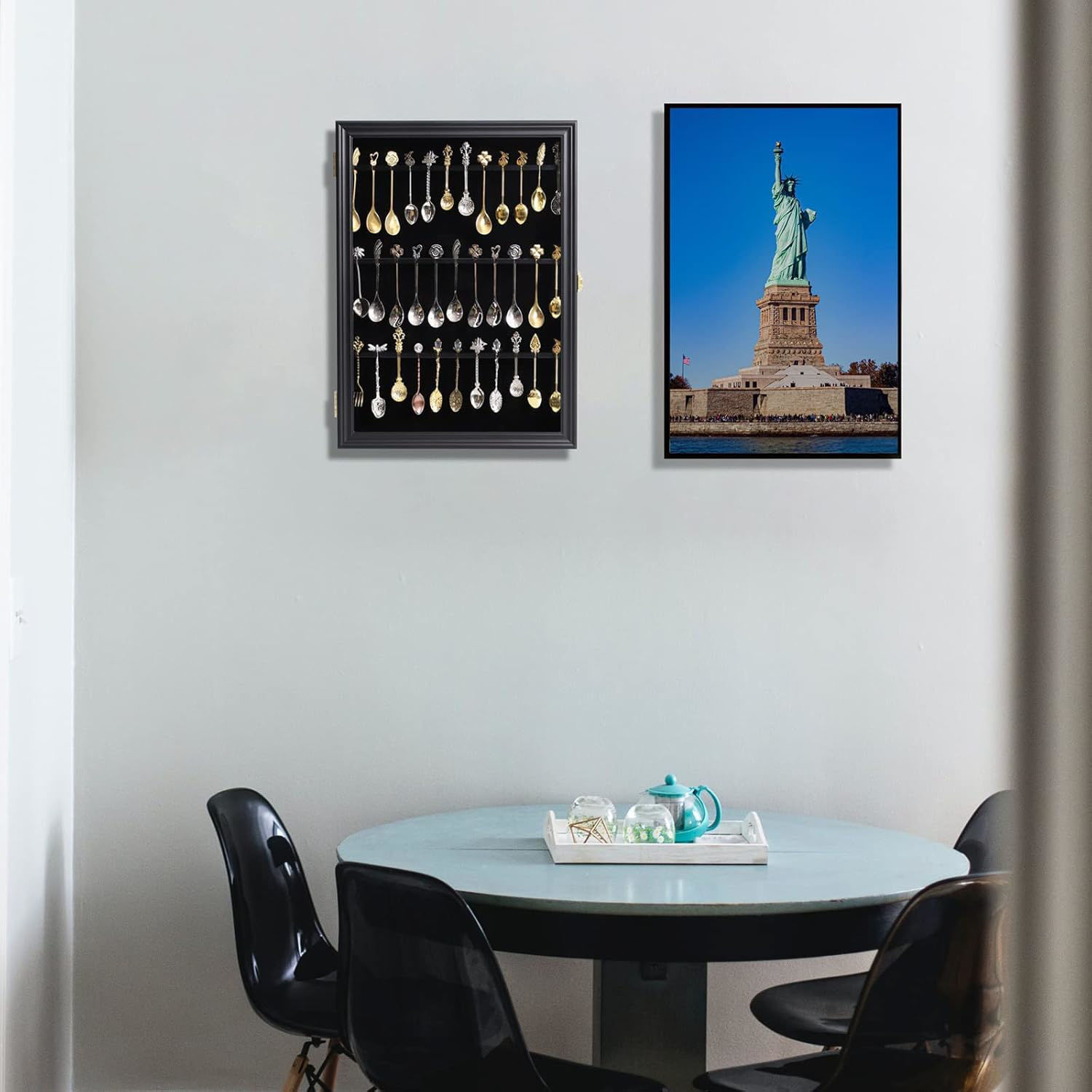 Black Finish Cabinet – Stylish and durable (spoons not included).