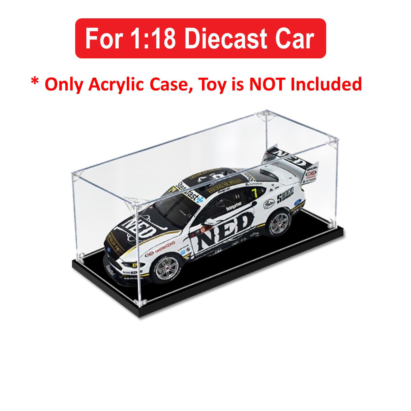 Acrylic Display Case for 1:18 BIANTE NED WHISKY FORD MUSTANG 2020 SYDNEY SUPERSPRINT #7 HEIMGARTNER Diecast Car Model Figure Storage Box Dust Proof Glue Free