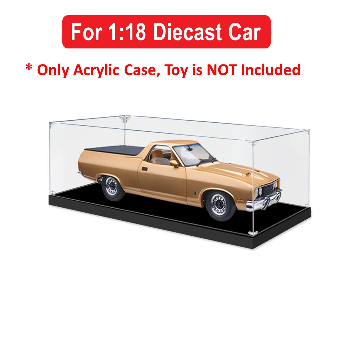 Acrylic Display Case for 1:18 CLASSIC CARLECTABLES FORD XC FALCON GS UTE DESERT HAZE Diecast Car Model Figure Storage Box Dust Proof Glue Free